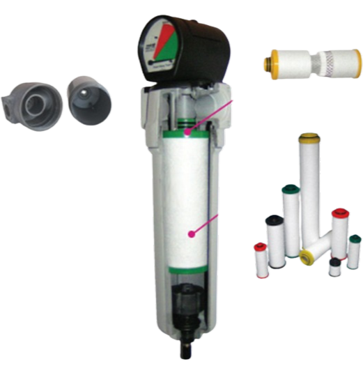 | P – 3 SERIE MICRON color verde | Filtro capaz de retener emulsiones y partículas sólidas de hasta 3 micras | Normalmente instalado a la entrada de las secadoras. Ideal como prefiltro para filtros de línea (S – X – Z SERIES), bombas de vacío, sistemas de soplado neumático |